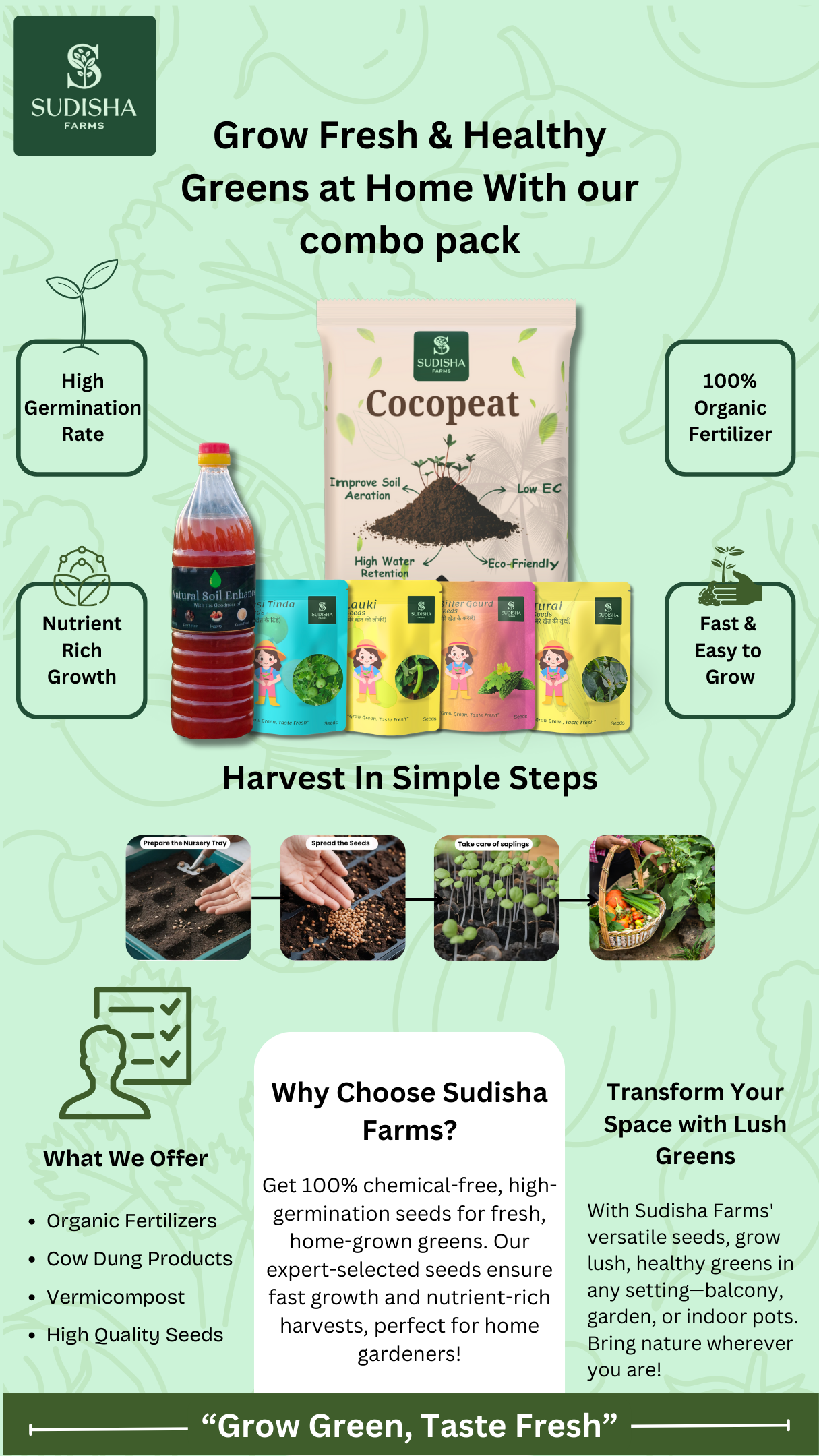 Combo Pack Turai, Karela, Lauki & Tinda Seeds (15 Each), 2kg Low EC Cocopeat With Natural Soil Enhancer (450ml)