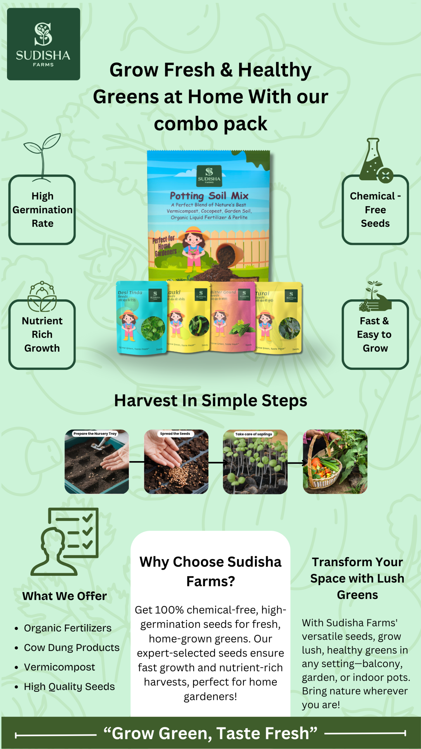 Grow Your Own Veggies Combo: Turai, Karela, Lauki & Tinda Seeds (15 each) with 2kg Nutrient-Rich Potting Soil Mix