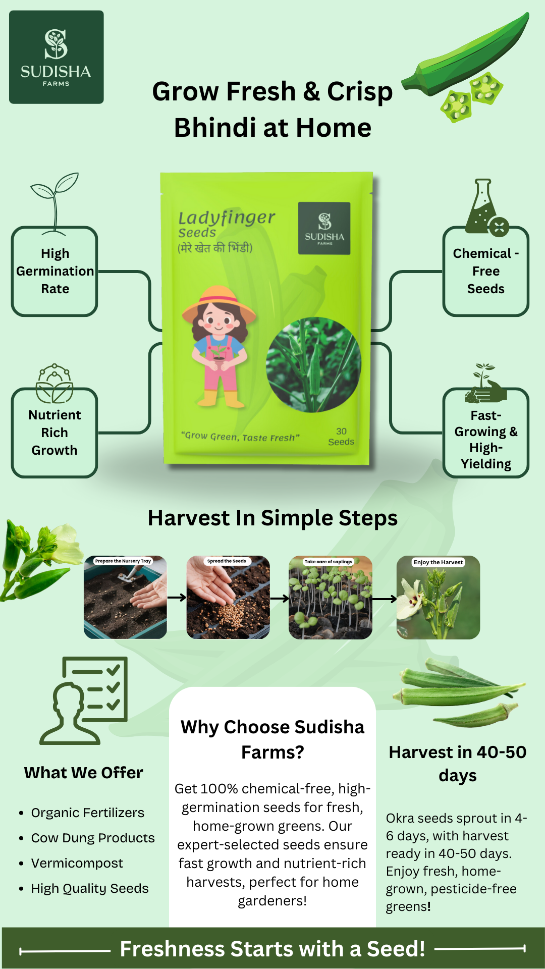 Ladyfinger/Bhindi Seeds | Premium Quality Seeds for Home Garden | Grow Green, Taste Fresh
