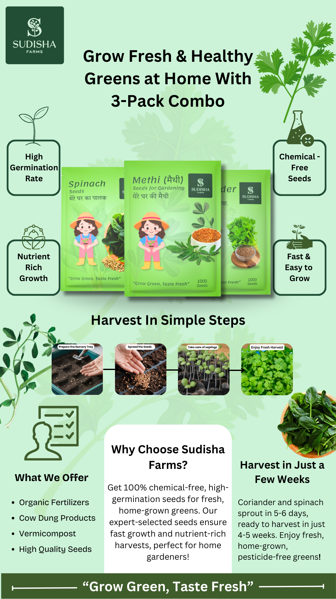 Combo of Spinach, Coriander, and Methi Seeds | Grow Fresh & Healthy Greens at Home