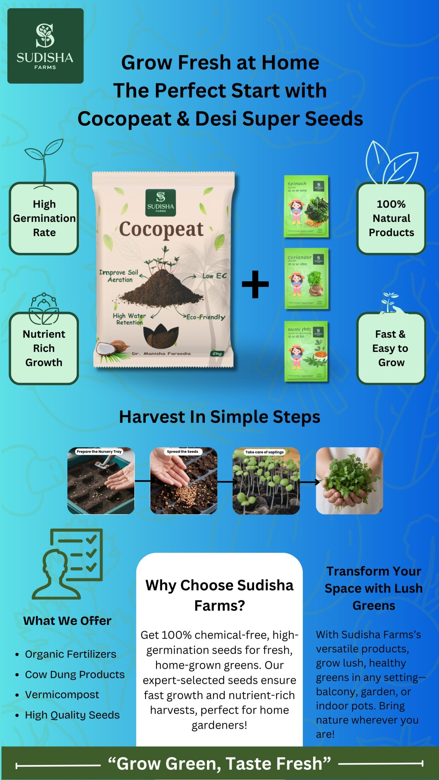 The Perfect Start with the combo of Cocopeat 2kg & Desi Super Seeds (Coriander, Methi & Spinach, 1000 seeds each)